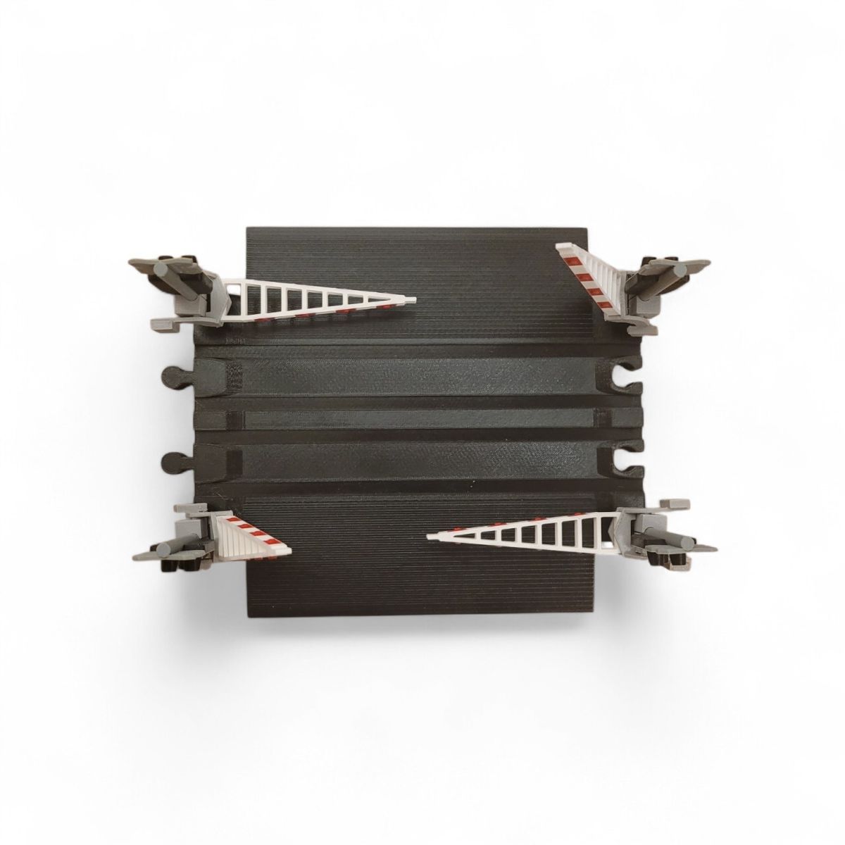 Přejezd dvoukolejný s výstražníky AŽD 97 čtyř závorový od 3Dvláčky. Kvalitní a zajímavé zpracování díky preciznímu 3D tisku a ručnímu dokončení.